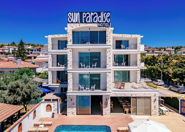 Dit Sun Paradise Hotel met 3 sterren is gesitueerd in Çeşme nog geen 15 minuten wandelen vanaf het Strand van Sera en biedt een zwembad. Dit hotel ligt op circa 3 km van de jachthaven van Cesme en beschikt over 27 kamers met een uizicht op de zee.